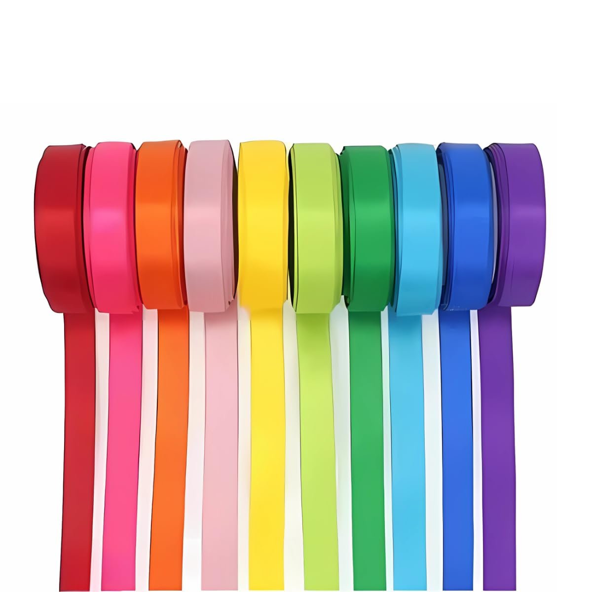 Satin Ribbon for Decoration, Gift Wrapping, School Projects, Opening Ceremonies & Multi-Purpose Use (Half Inch – 10Mtr x 10 PCs, Multicolor)
